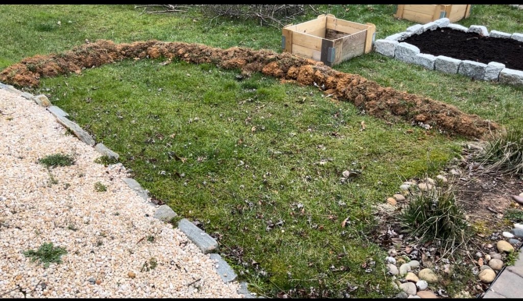 Creating the edging for the rain garden gave me a new perspective on building the rain garden. After I had laid the edging, it rained. This gave me a better idea of the water flow, where the water collects, and how long it takes the water to drain. The next project will be the rain garden. Hopefully, some water-loving plants will be available when I am done.